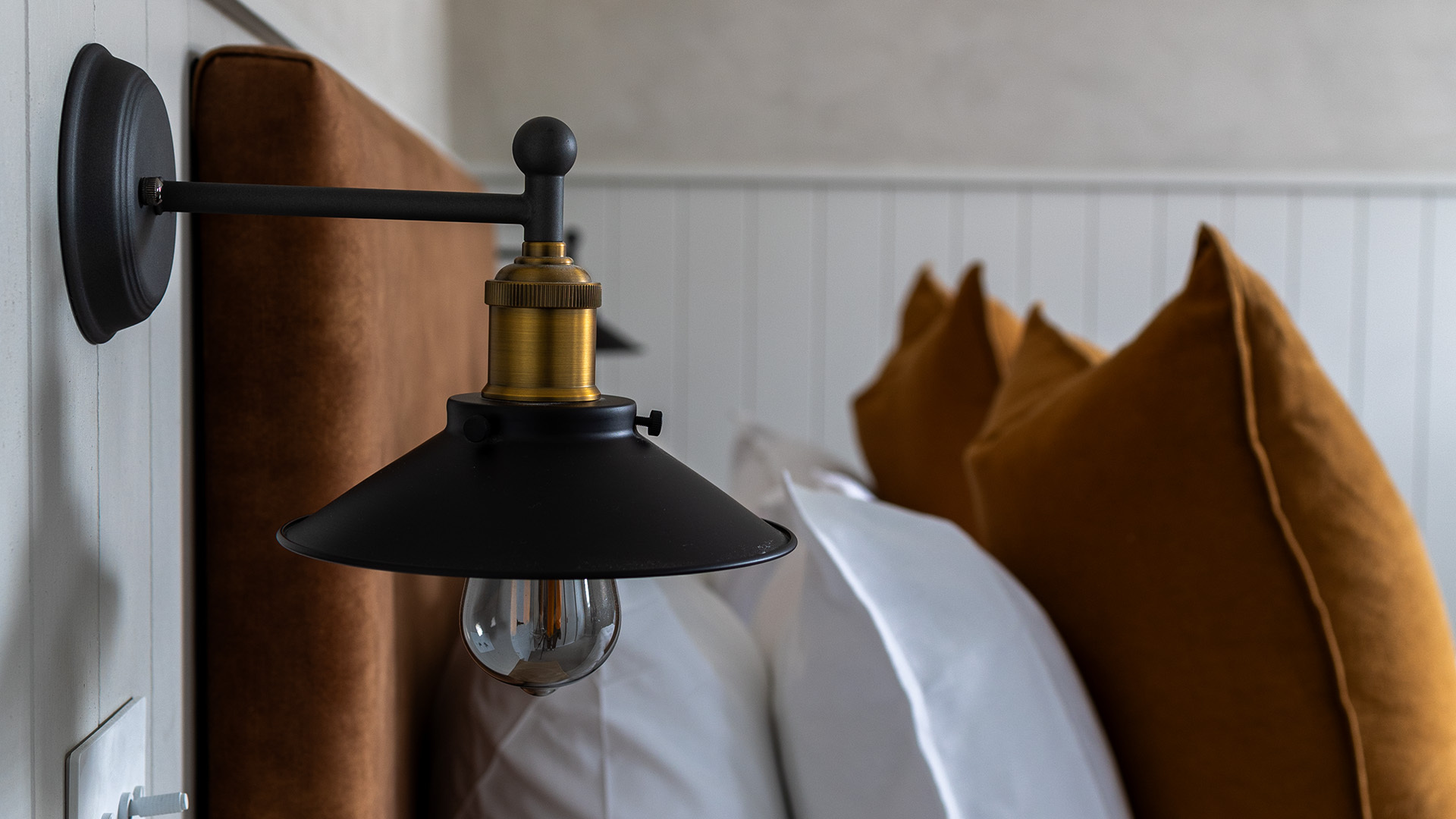 The builder/owner wanted to honour the original shearers cottage, so the living area of the cottage was very much in keeping with that, including using sarking for the walls sourced from a neighbouring property. The lean to at the back of the cottage was turned into a bedroom and ensuite with a softer approach taken here. Plastered walls, wool carpet, soft furnishings, a modern bathroom and beautiful bed linens add to this calming space.