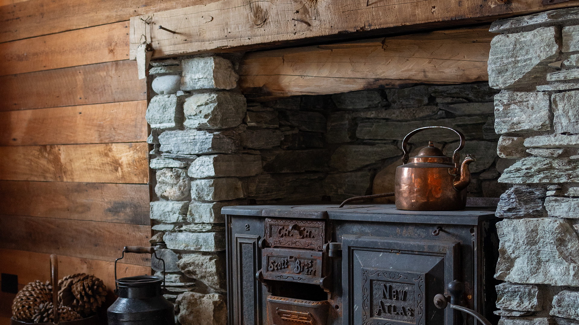Preserving its pioneering legacy, the restoration involved meticulous efforts. The iconic timber shingles roof, a hallmark of its historical significance, was safeguarded beneath a new iron layer treated with hydrochloric acid for an authentic patina. A crumbling rubble stone-built chimney, featuring intricate mortice and tenon joints, was rebuilt with local river stones mirroring the original 1870s pattern.