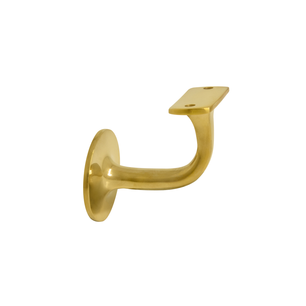 The Stair Rail Bracket with a flat mount securely attaches a handrail to a flat wall surface, providing stability and support for safe navigation of stairs.