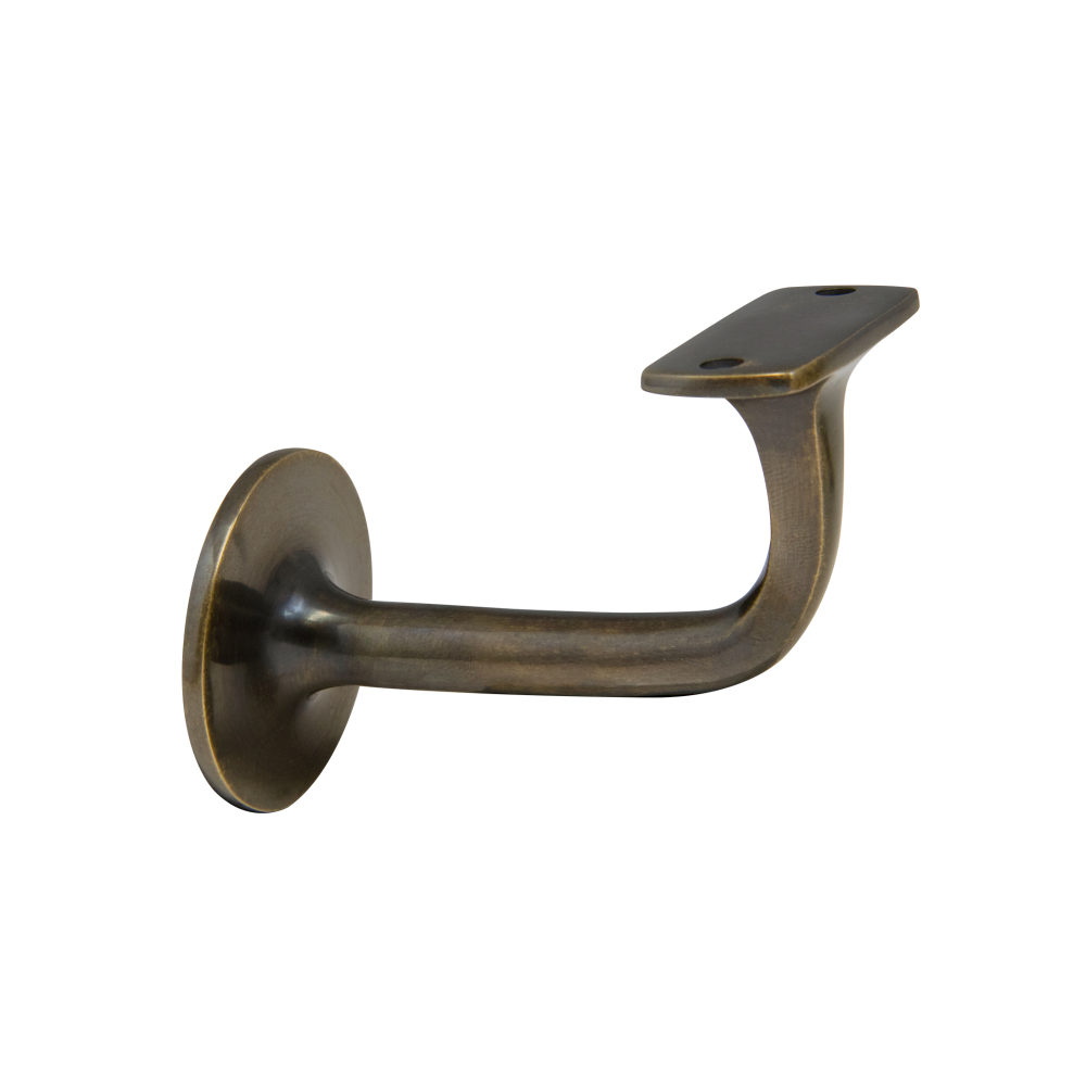 The Stair Rail Bracket with a flat mount securely attaches a handrail to a flat wall surface, providing stability and support for safe navigation of stairs.
