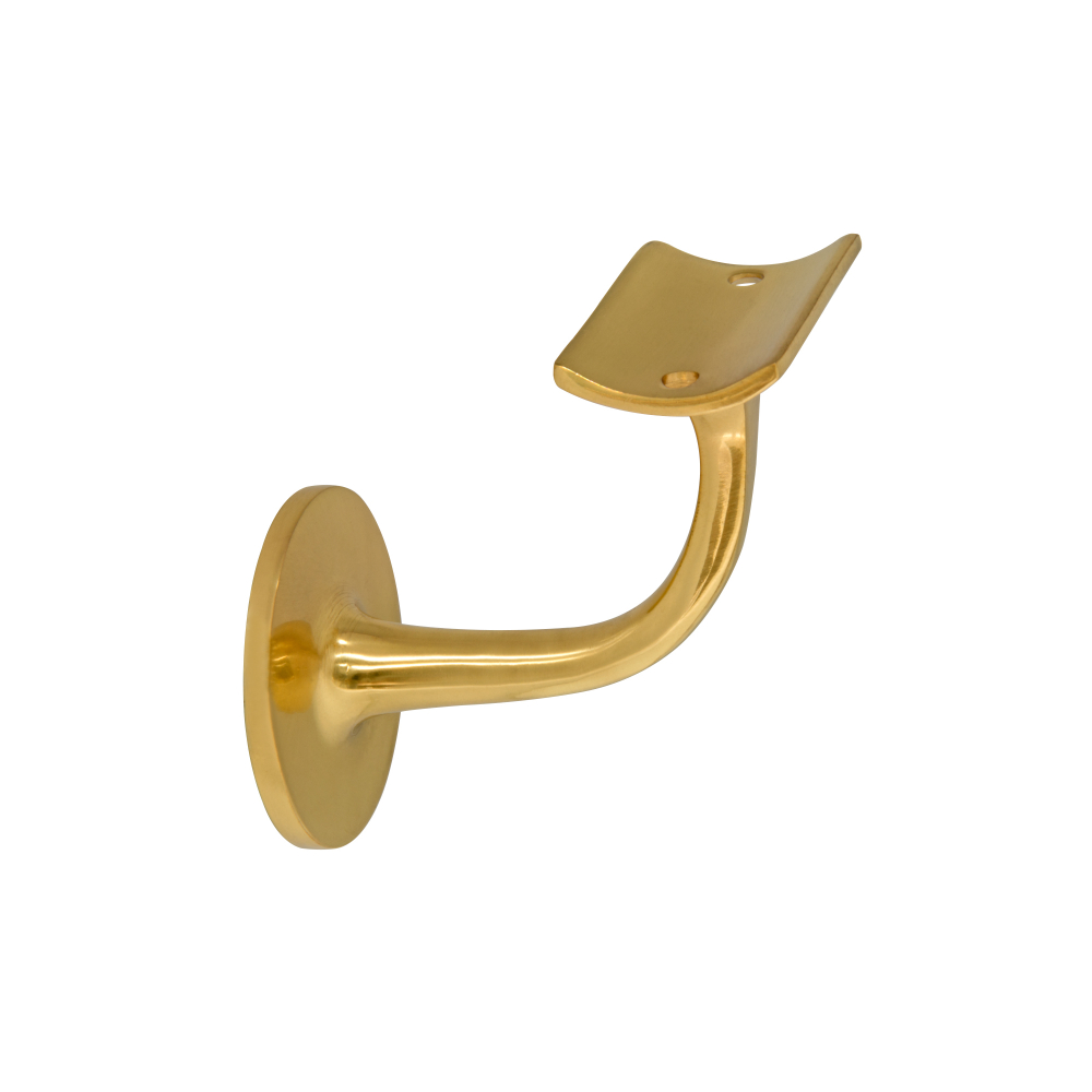 A Stair Rail Bracket with a curved mount is designed to securely attach a handrail to a curved or rounded surface, ensuring stability and support while accommodating non-flat installations.