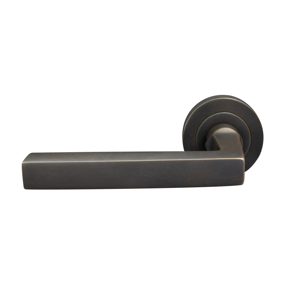 The solid surfaces of the lever join the rose or longplate with contoured detailing. Pronounced accents make a bold statement that confidently blends colonial and Italian style.