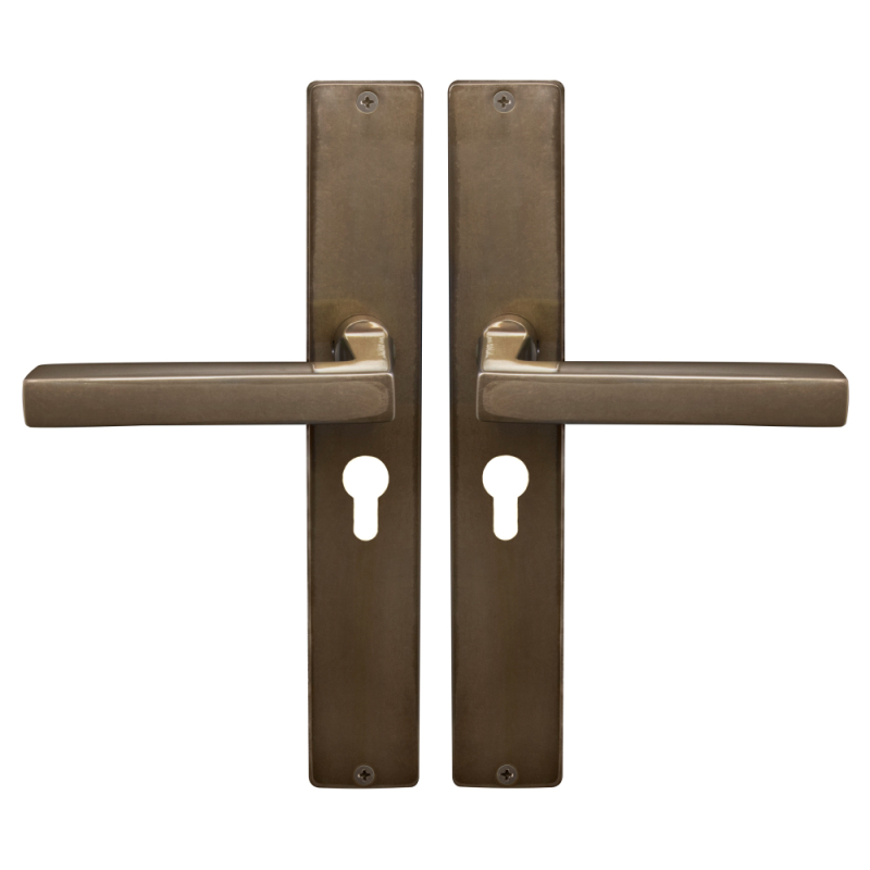 The solid surfaces of the lever join the rose or longplate with contoured detailing. Pronounced accents make a bold statement that confidently blends colonial and Italian style.