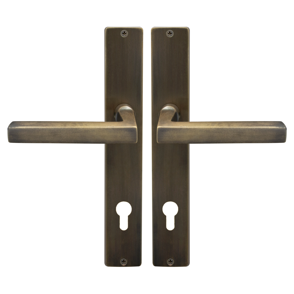 The solid surfaces of the lever join the rose or longplate with contoured detailing. Pronounced accents make a bold statement that confidently blends colonial and Italian style.