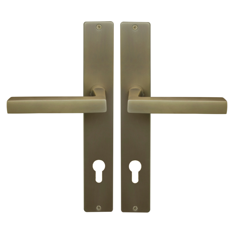 The solid surfaces of the lever join the rose or longplate with contoured detailing. Pronounced accents make a bold statement that confidently blends colonial and Italian style.
