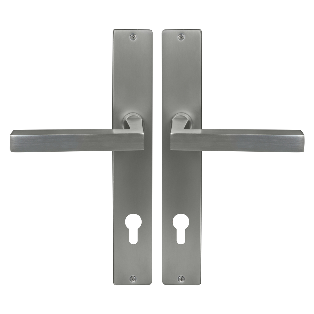 The solid surfaces of the lever join the rose or longplate with contoured detailing. Pronounced accents make a bold statement that confidently blends colonial and Italian style.