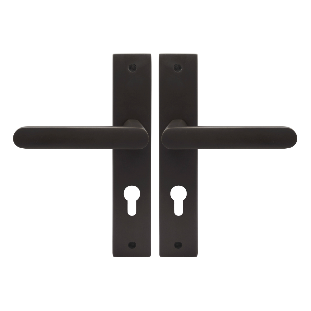 The solid surfaces of the lever join the rose or longplate with contoured detailing. Pronounced accents make a bold statement that confidently blends colonial and Italian style.