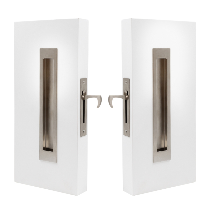 A Flush Pull is a recessed handle installed on sliding or pocket doors, allowing for a smooth, flush finish that facilitates easy opening and closing while maintaining a sleek appearance.