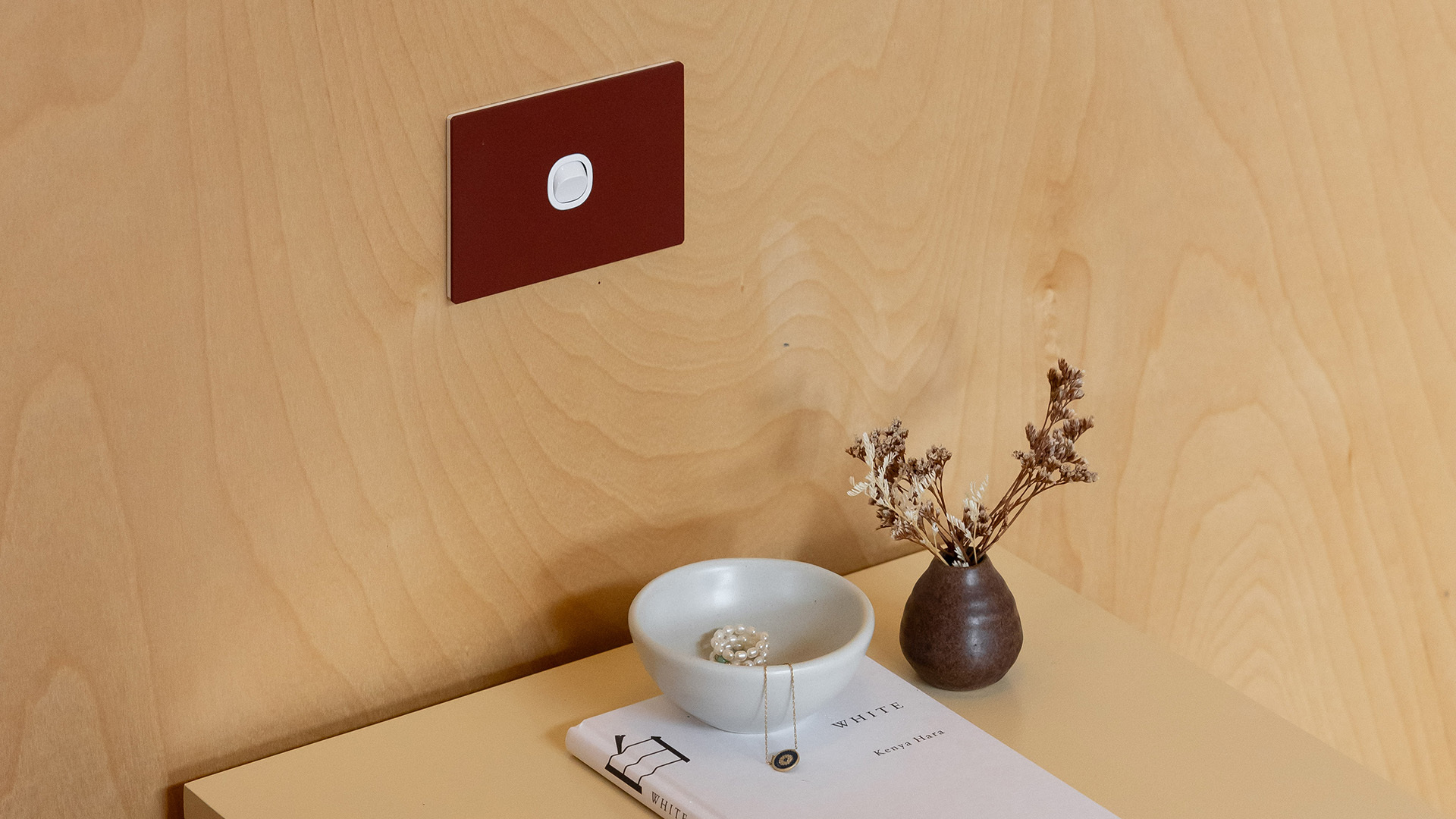 This concept extended to lighting fixtures, with light switch and power outlet covers powder coated in the same colour for a cohesive design scheme.