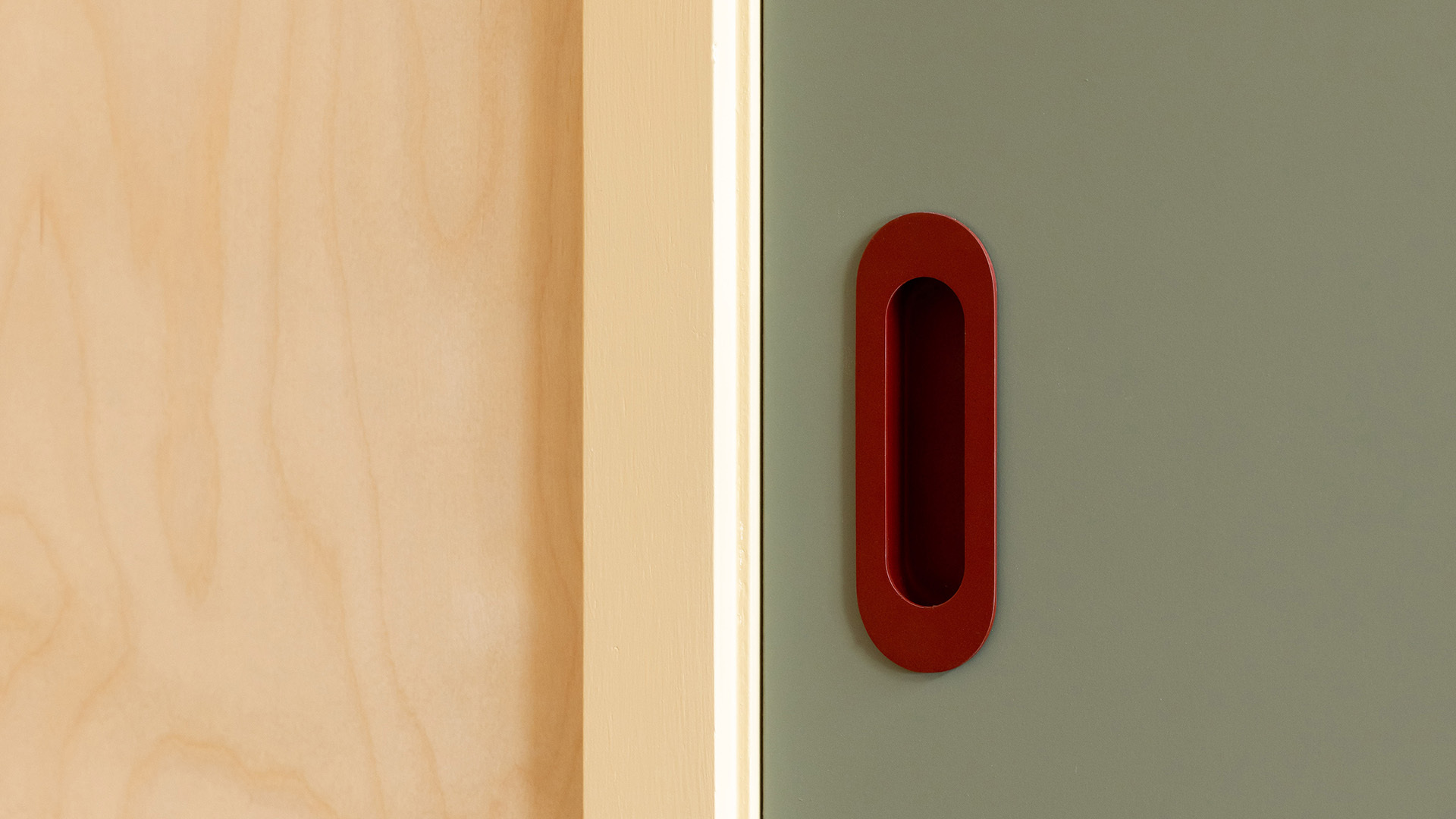 Dulux powder coating in Scoria red accented interior spaces, enhancing spatial recognition. This colour choice facilitated clear articulation of hardware elements, with defined contrast aiding in spatial feature recognition.